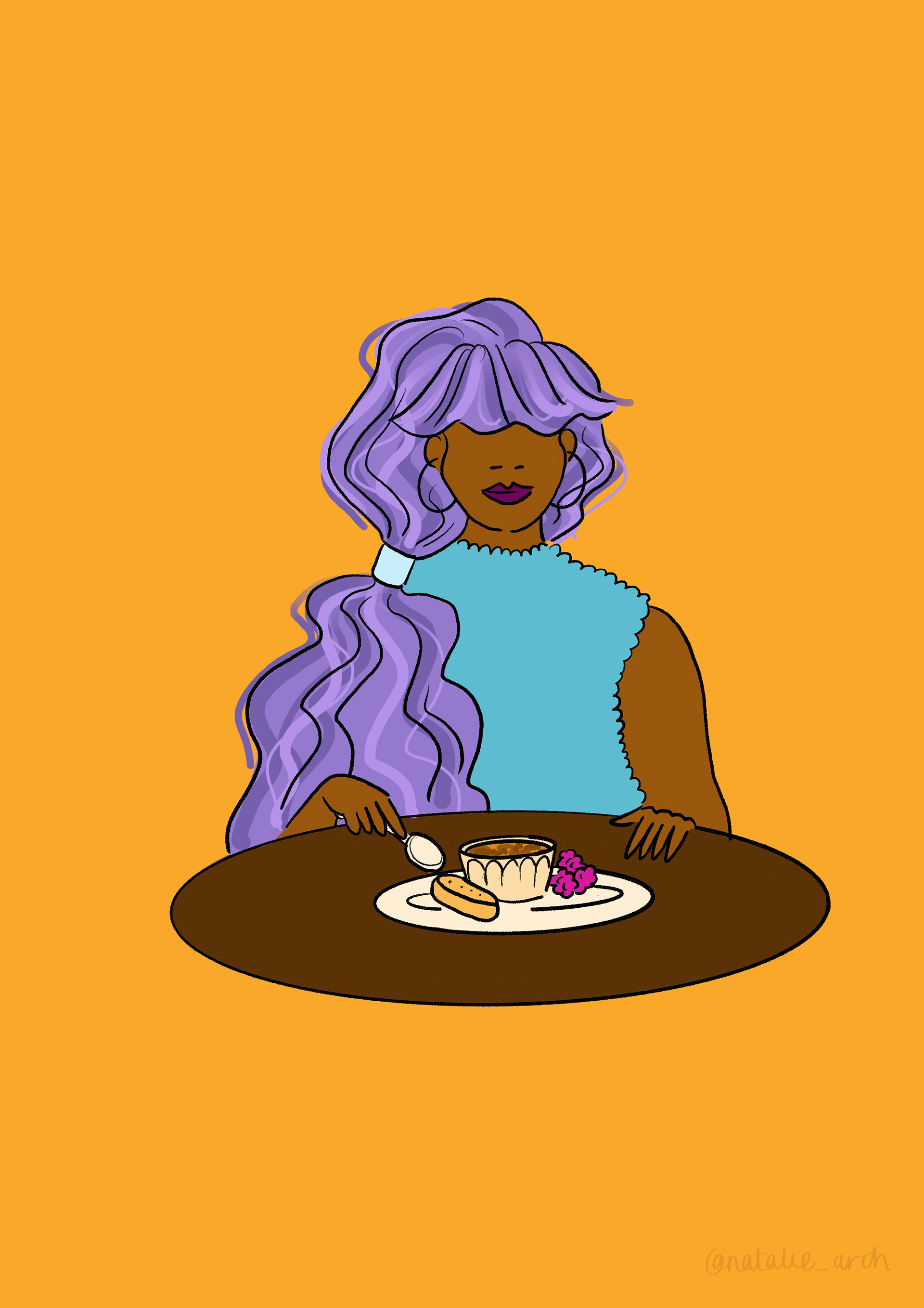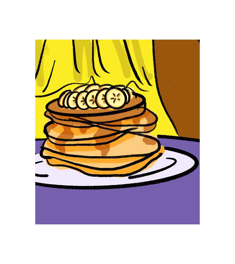 As a firm fan of food, I created a character who's enjoying a three course meal. She's got pancakes, pizza and finishes it off with a creme brulee! What's you ideal three course meal?
